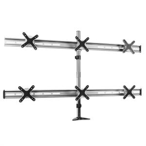 - Pivoting, tilting and rotating mounting table bracket for six computer monitors, LCD and LED televisions – 2 levels