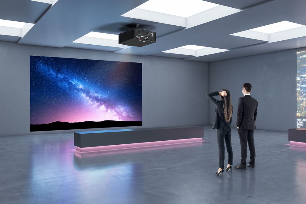 True AV mute enables the light source of the projector to be instantly switched off and on at the press of a button. Unlike standard AV mute functionality no light is emitted from the projector, this gives 100% blackout on screen.