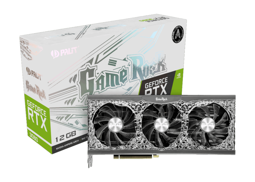| Palit New GameRock, also known as “The Dazzling Angel,” is specially designed for enthusiast gamers who desire to have ultimate gaming experience and pursue maximum ARGB lighting environment. GameRock series provide the best gaming features, ultimate thermal solution and premium graphics card quality, make you become a real game rocker without fear. This GeForce RTX™ 3080 12GB graphics card with LHR (lite hash rate) delivers 52 MH/s ETH hash rate (est.).NVIDIA RTX is the most advanced platform for ray tracing and AI technologies that are revolutionizing the ways we play and create. Over 150 top games and applications use RTX to deliver realistic graphics with incredibly fast performance or cutting-edge new AI features like NVIDIA DLSS and NVIDIA Reflex.